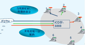 分机群内的任何一个分机可以直接代接本群内其它的响铃分机。