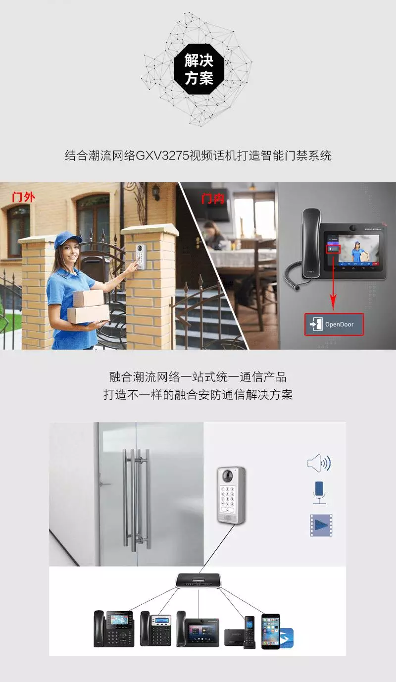 潮流网络正式发布全景高清IP门禁系列GDS3710,它也可作为高清IP监控摄像机和IP对讲机,为各种规模的建筑设施提供门禁控制和视频监控,致力于为客户提供门禁、对讲、安防三方于一体的服务。